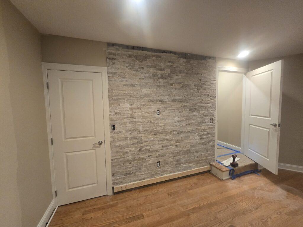 - Installed a stone ledger feature wall to add texture and a high-end focal point in the finished basement.